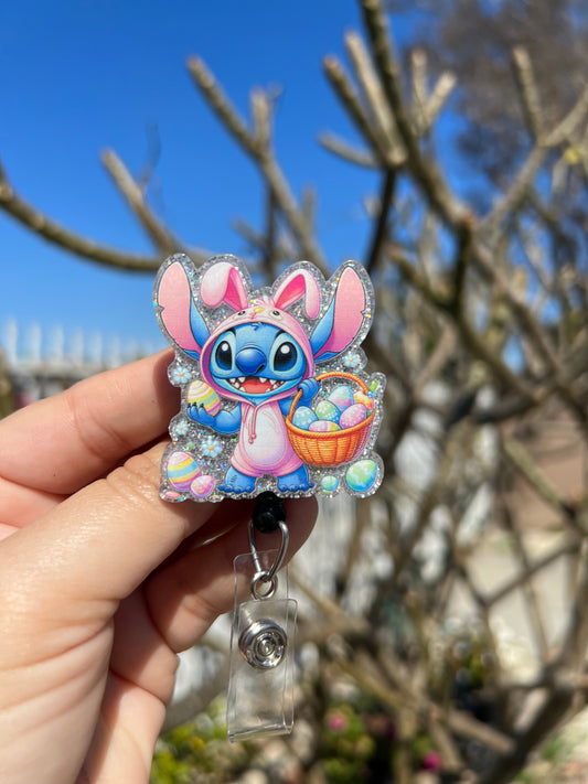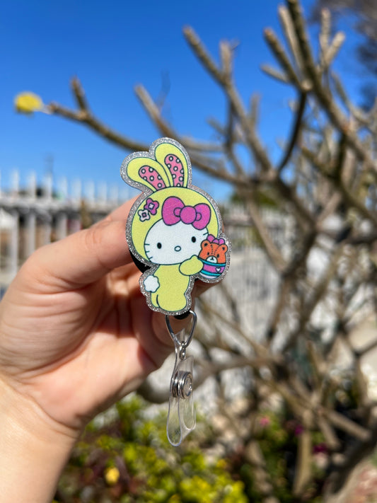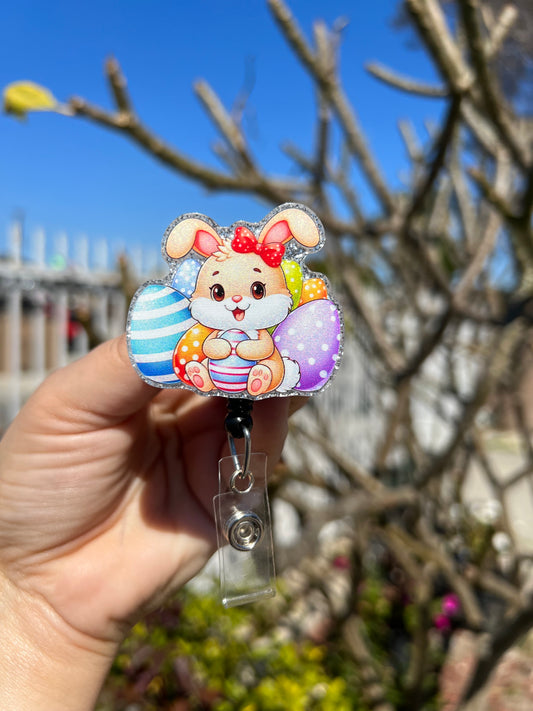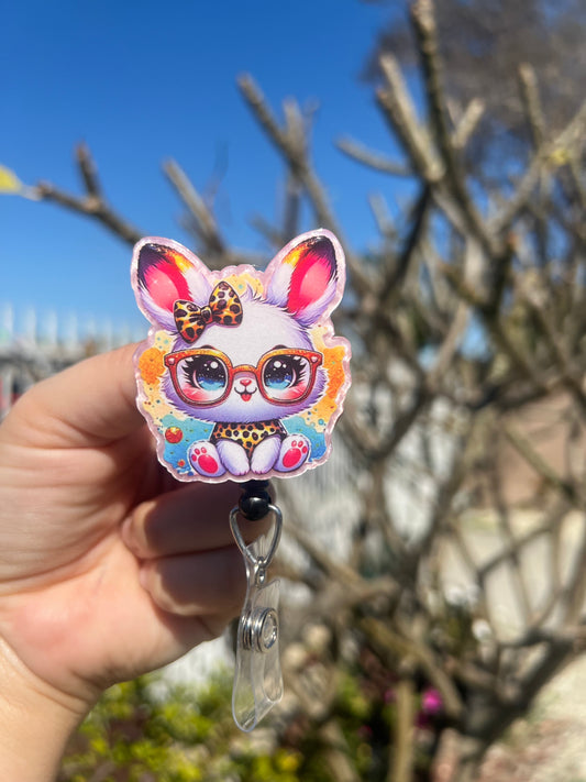 Pink Bunny Badge Reel | Retractable | Easter Bunny Badge Holder | Sitting Bunny | Name tag holder | Animal Badge holder | Interchangeable