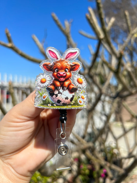 Highland Cow Bunny Badge